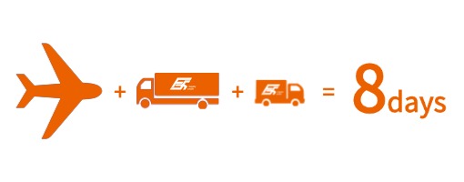 Fuxin Air Freight, cargo pickup, and last-mile delivery service takes approximately 8 days for standard shipments.
