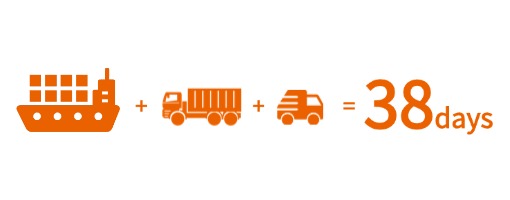 Fuxin sea transportation, cargo pickup, and last-mile delivery service takes approximately 38 days for standard shipments.