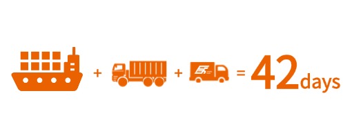 Fuxin sea transportation, cargo pickup, and last-mile delivery service takes approximately 42 days for standard shipments.