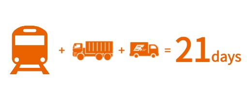 Fuxin Railway Freight, cargo pickup, and last-mile delivery service takes approximately 21 days for standard shipments.