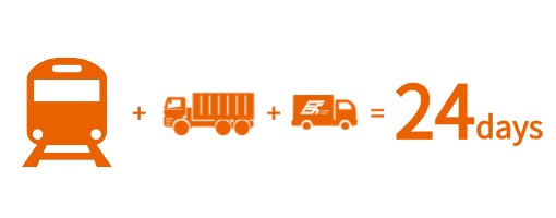 Fuxin Railway Freight, cargo pickup, and last-mile delivery service takes approximately 24 days for standard shipments.
